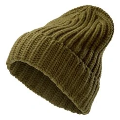 Ce bonnet vert olive est fabriqué avec un mélange de matériaux, ce qui lui confère un style plus épais qui retient la chaleur sans emprisonner la sueur.
