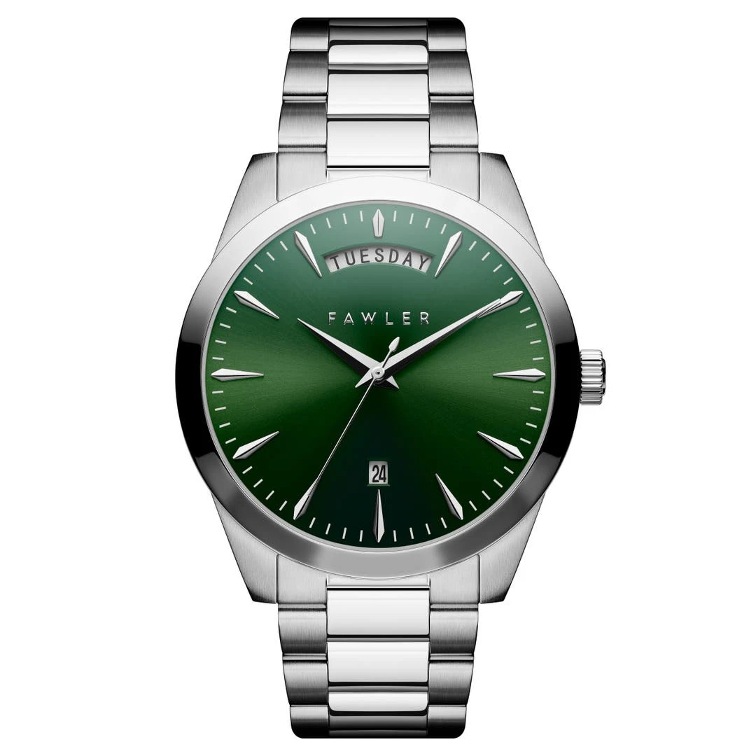 Son boîtier en acier chirurgical abrite un mouvement Seiko ultra-fiable et précis. Une discrète fenêtre située à 6 heures affiche la date tandis qu’une plus large fenêtre située à 12 heures indique le jour de la semaine.