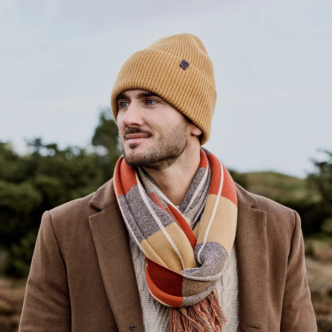 Pas besoin de sacrifier le style pour le confort grâce à ce bonnet écologique couleur orange ambre pour homme.