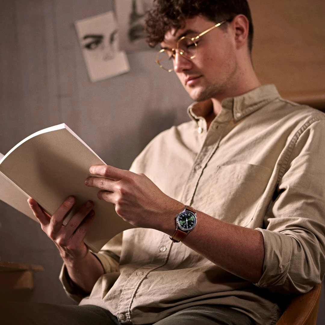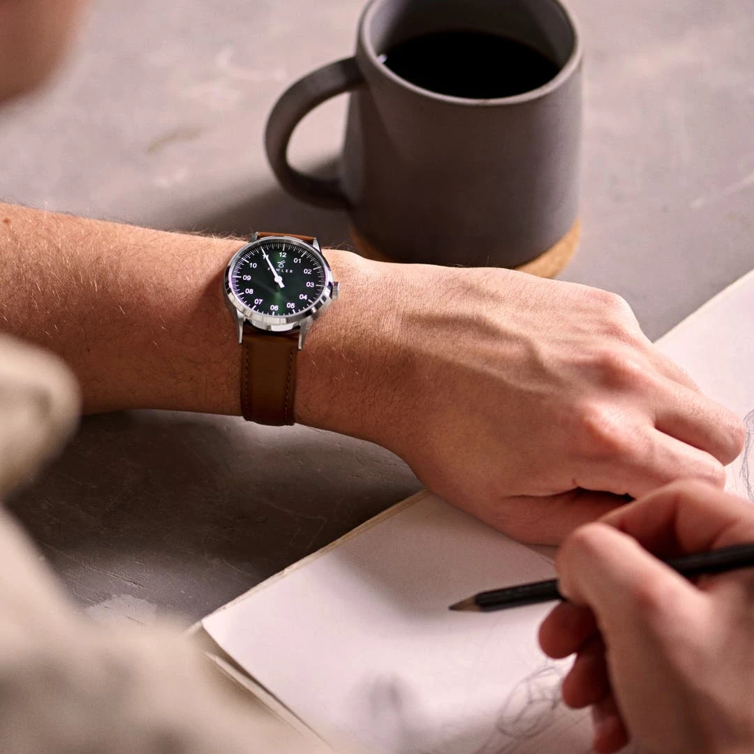 Élégante, minimaliste et colorée. Cette montre pour homme est équipée d’une seule aiguille – prenez du recul et vivez dans le présent, sans la pression de voir chaque seconde s’écouler sous vos yeux.