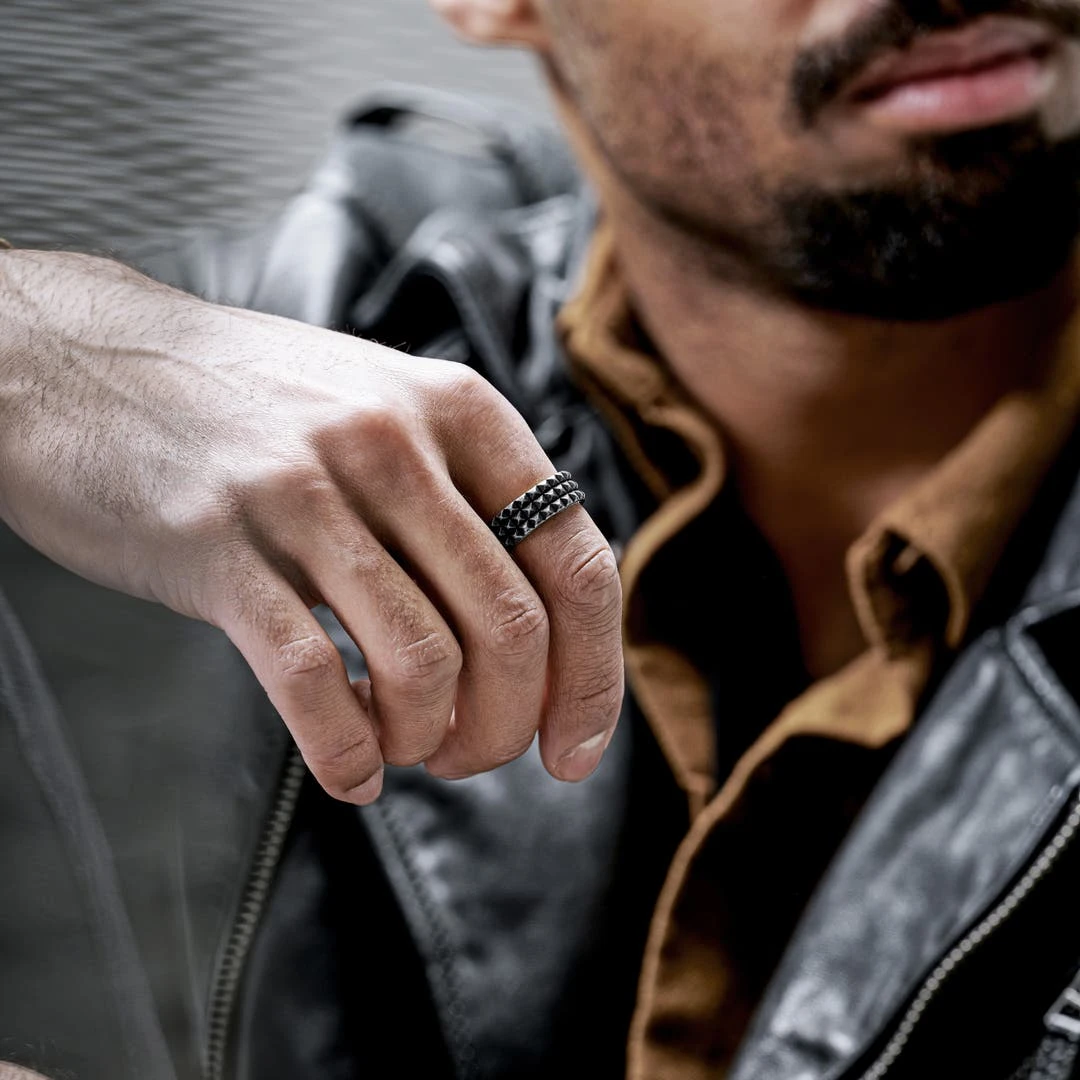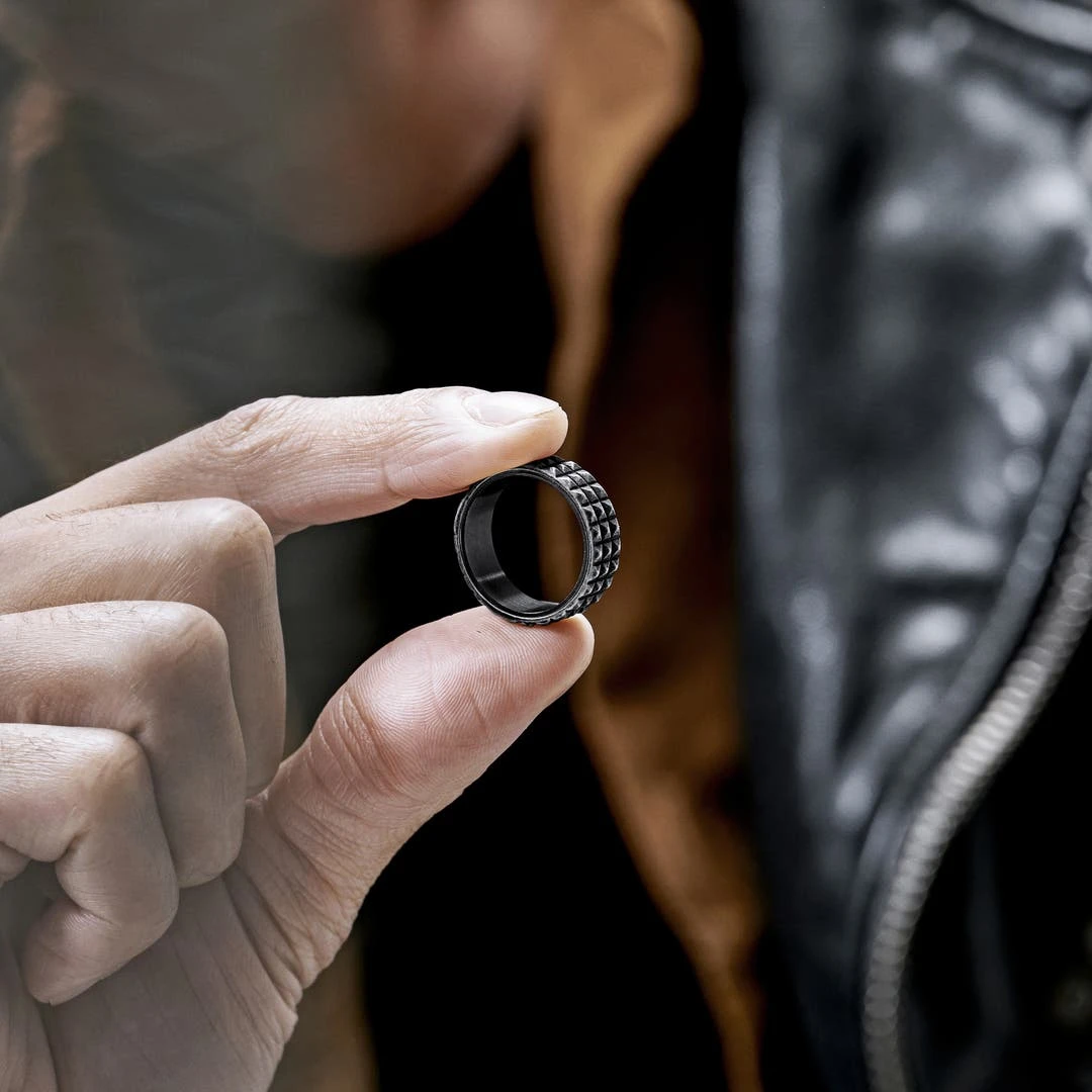 Lucleon Bague En Acier Noir Vintage Pearce Pyramis