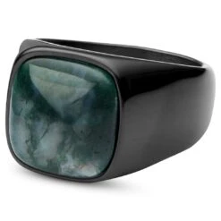 Lucleon Bague Len Gravel Couleur Gunmetal Avec Pierre D’agate Mousse