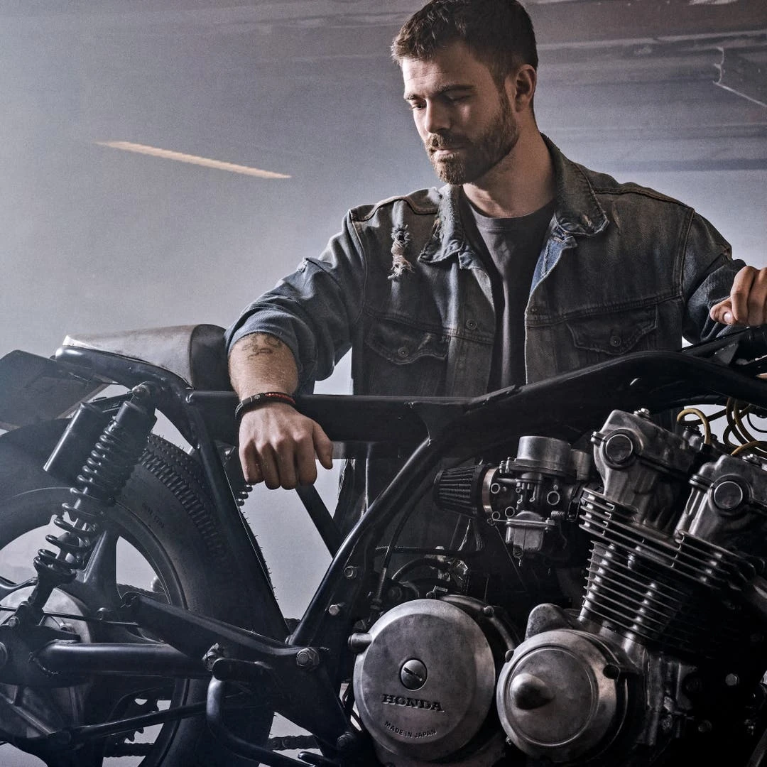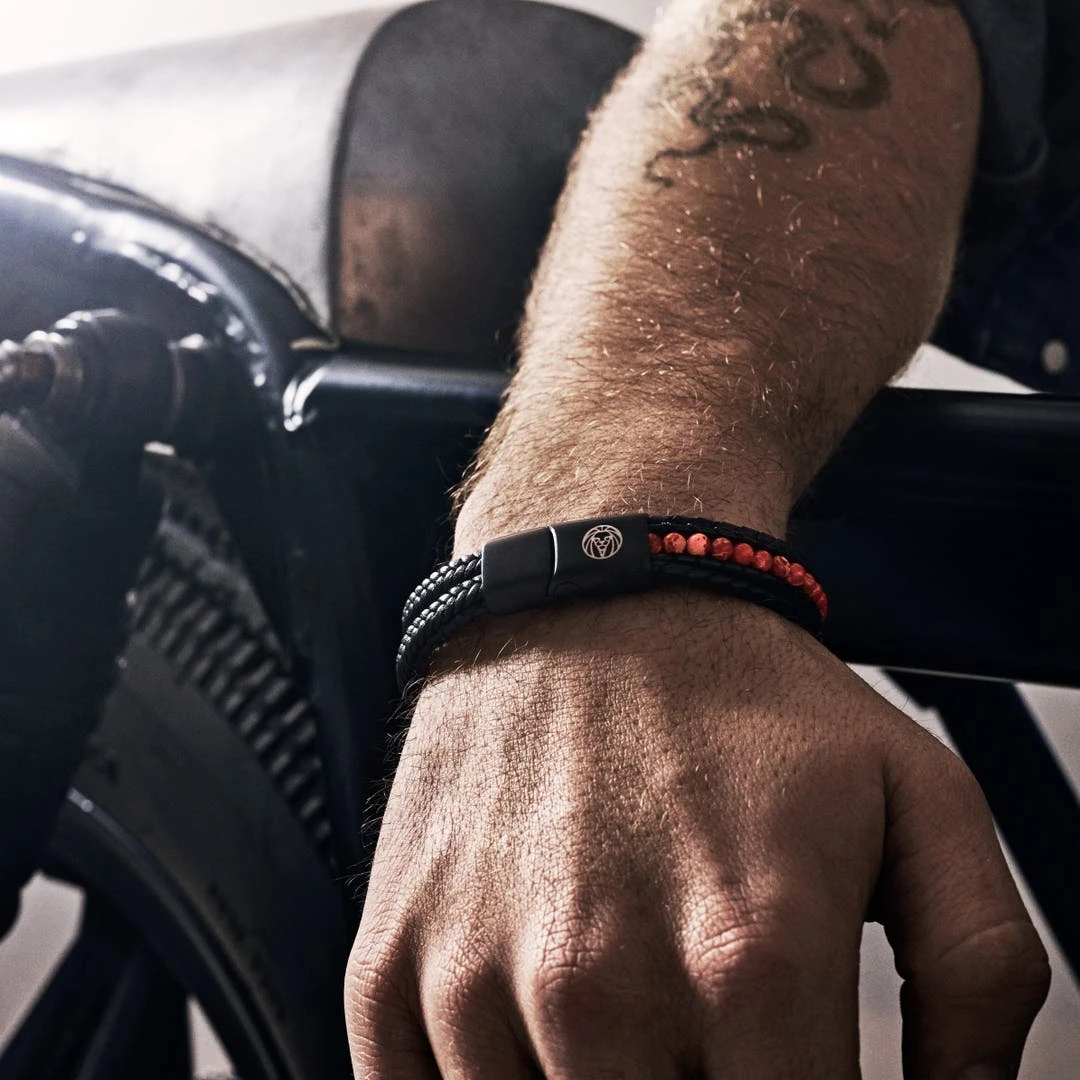 Lucleon Bracelet Naxos En Cuir Noir Et Perles De Jaspe Impérial Rouge