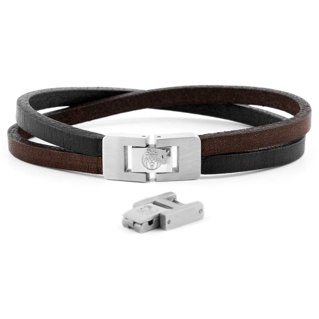 Lucleon Bracelet Roy à Simple Tout En Cuir Foncé Avec Fermoir Argenté