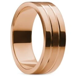 Lucleon Ferrum | Anneau à Double Rainure En Acier Inoxydable Brossé Et Poli Couleur Or Rose – 8 Mm