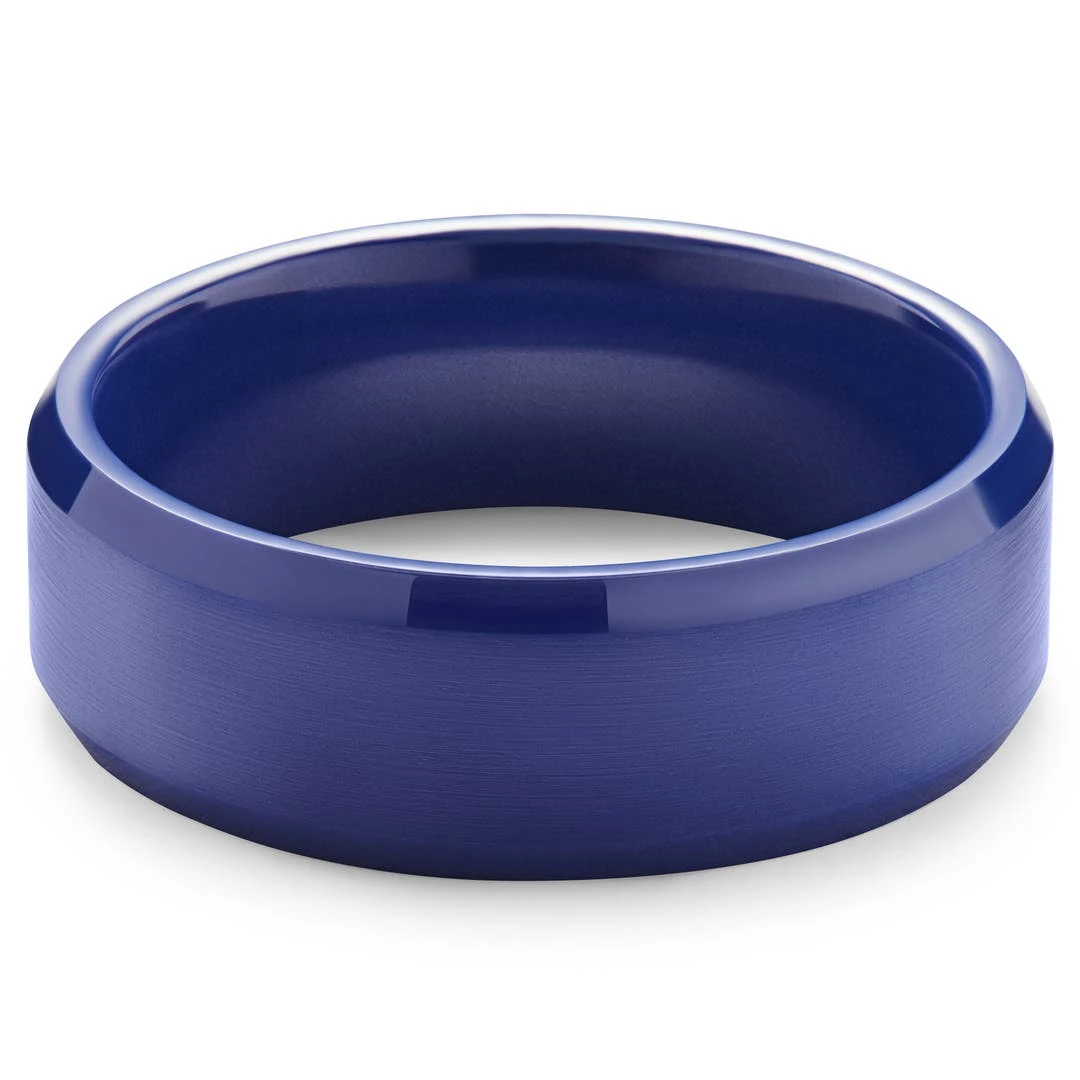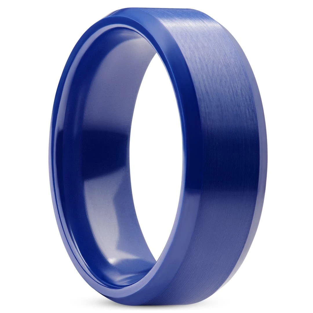 Lucleon Ferrum | Anneau Bleu En Céramique Brossée à Bords Biseautés Polis – 8 Mm