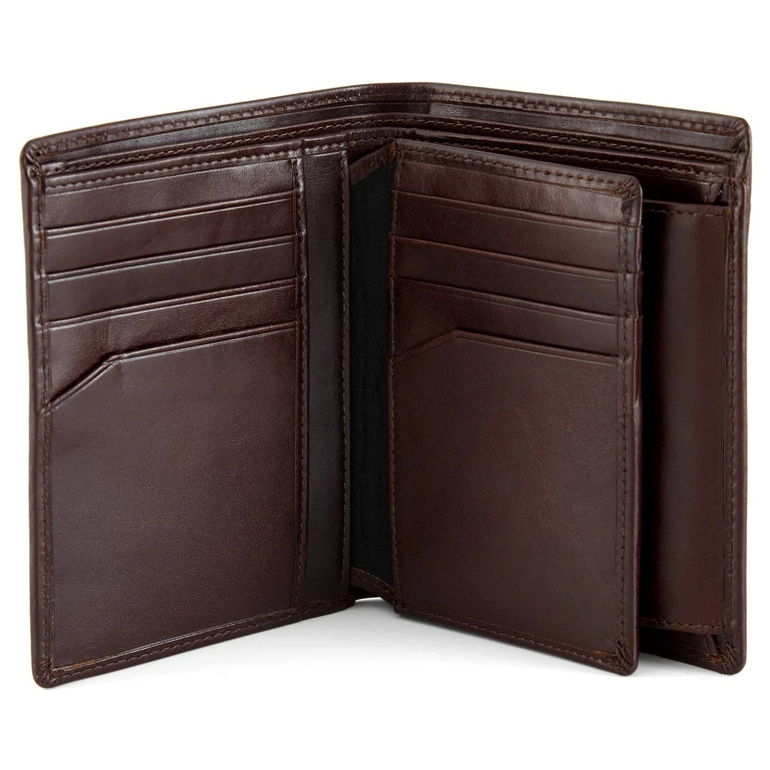 Fabriqué en cuir de vachette naturel, ce portefeuille offre assez d’espace pour transporter en toute sécurité argent et cartes bancaires. Un design compact marron foncé donne à ce portefeuille un look masculin et distingué.