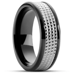Lucleon Hyperan | Anneau Noir En Titane Avec Motif Diamant Argenté – 8 Mm
