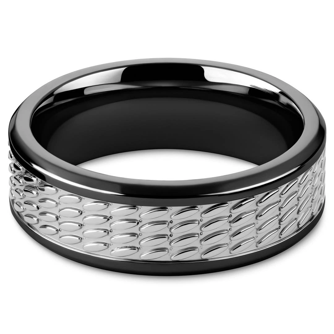 Lucleon Hyperan | Anneau Noir En Titane Avec Motif Ovale Argenté – 8 Mm