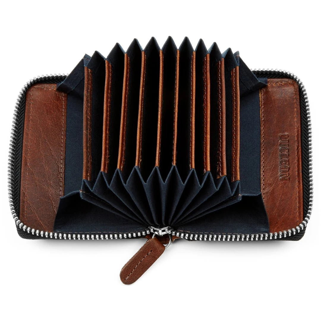 Confectionné dans un cuir de buffle doux au toucher et qui gagnera en beauté au fils des ans, ce magnifique porte-cartes pourra contenir jusqu’à 10 cartes de crédit dans 10 pochettes individuelles.
