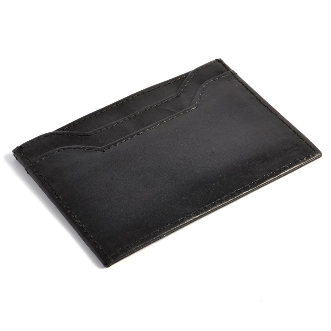 Le porte-cartes est fabriqué de cuir de vache noire avec un total de 5 poches. 4 poches pour les cartes, et une poche centrale pour les petits objets comme des reçus et des billets.