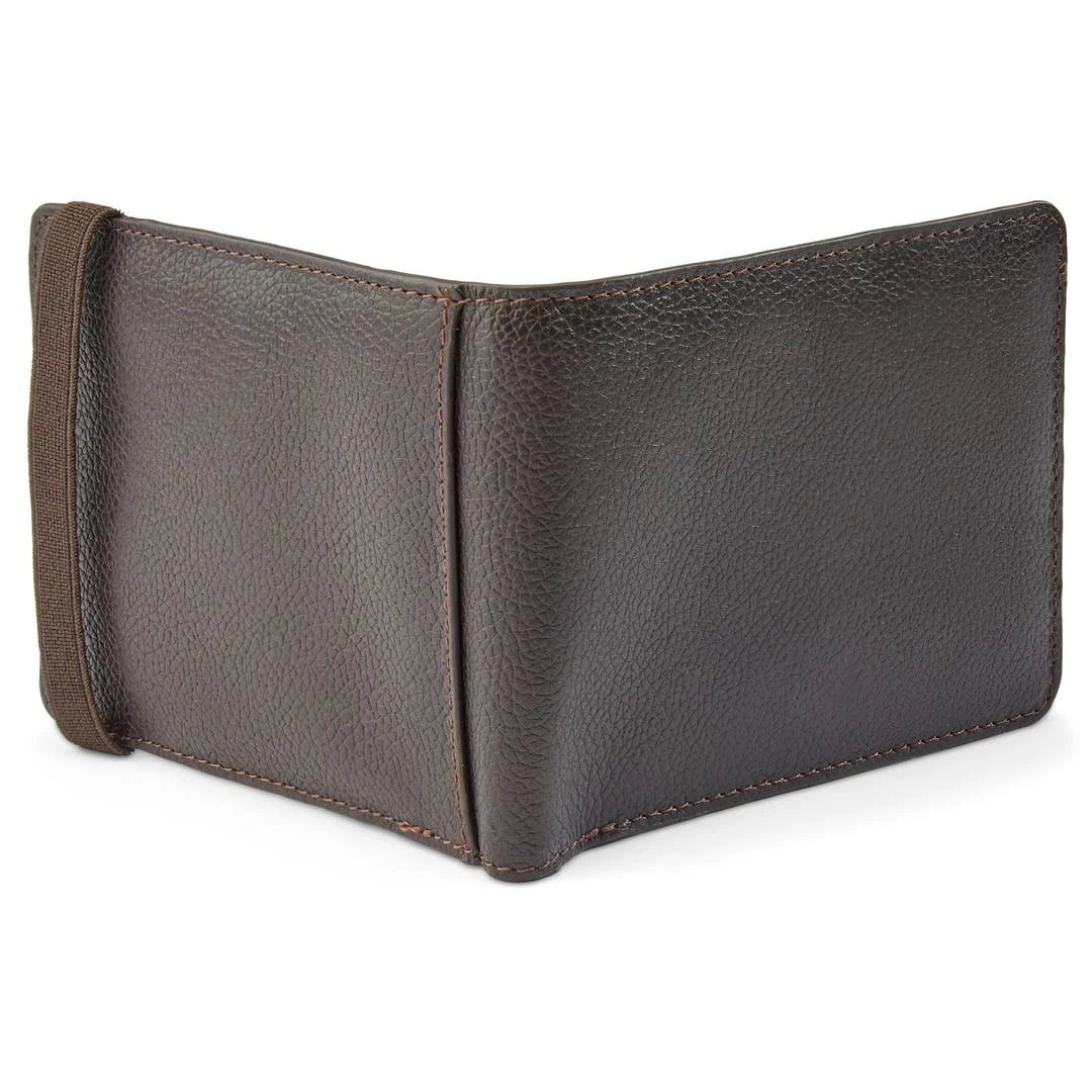 Le portefeuille est fermé hermétiquement avec un élastique. Son design mince se glisse bien dans votre poche arrière et est sécurisé avec une doublure de protection RFID complète.