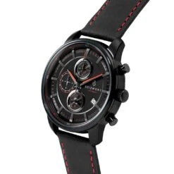 Seizmont Iphios | Montre Chronographe Noire En Acier Inoxydable Avec Bracelet Manchette En Cuir