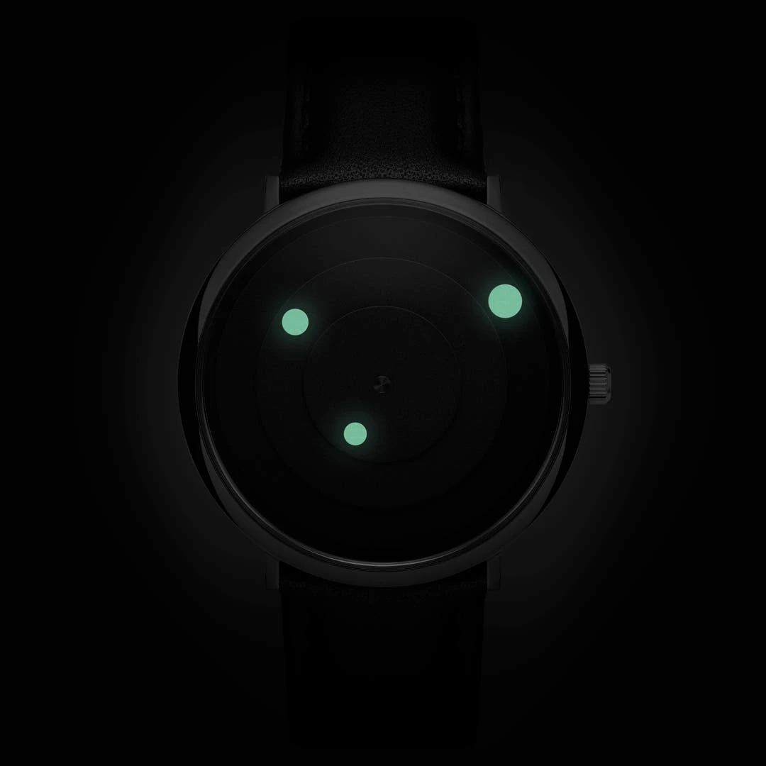 Laissez votre montre-bracelet vous aider à vous sentir un avec l’univers. Au fil des heures, les points blancs tournent sur le cadran noir mat, à la manière des planètes effectuant leur révolution autour du soleil. Et lorsque le soleil se sera couché, vous serez toujours en mesure de lire l’heure grâce à ses luminescences de haute qualité.