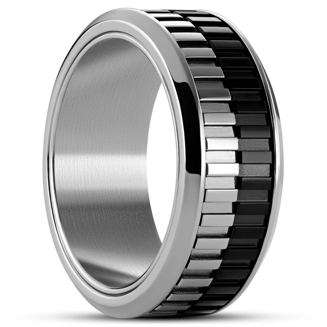 Seizmont Tigris | Anneau Mobile Argenté Et Noir 9 Mm