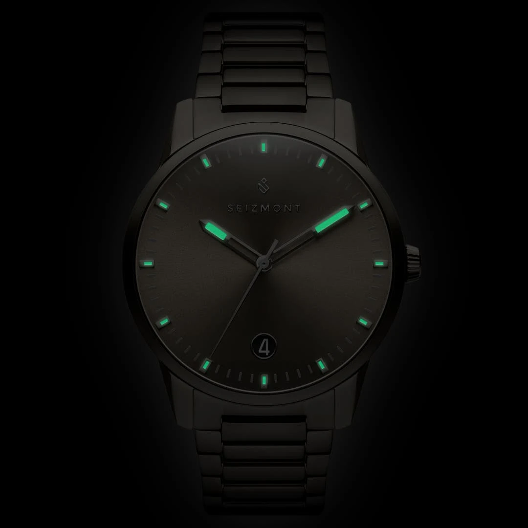 Du verre bombé anti-reflets protège son cadran minimaliste, améliorant la lisibilité même sous la lumière la plus éblouissante. Ses aiguilles classiques et graduations sont revêtues d’une lumière phosphorescente de haute qualité – vous pourrez lire l’heure même après que le coucher de soleil.