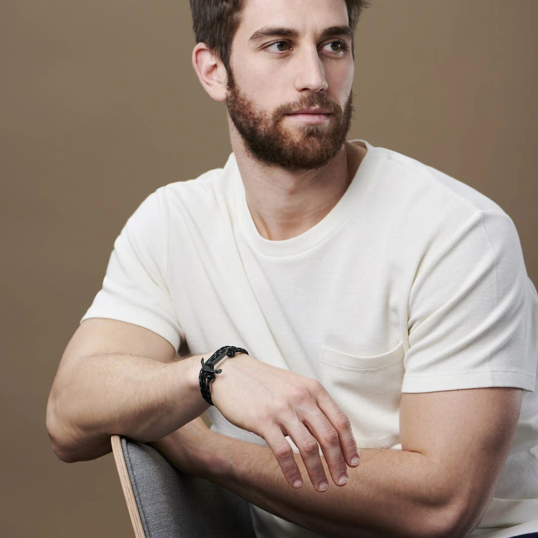 Tailor Toki Bracelet L’ancre Noire à Cordon Noir Et Bleu