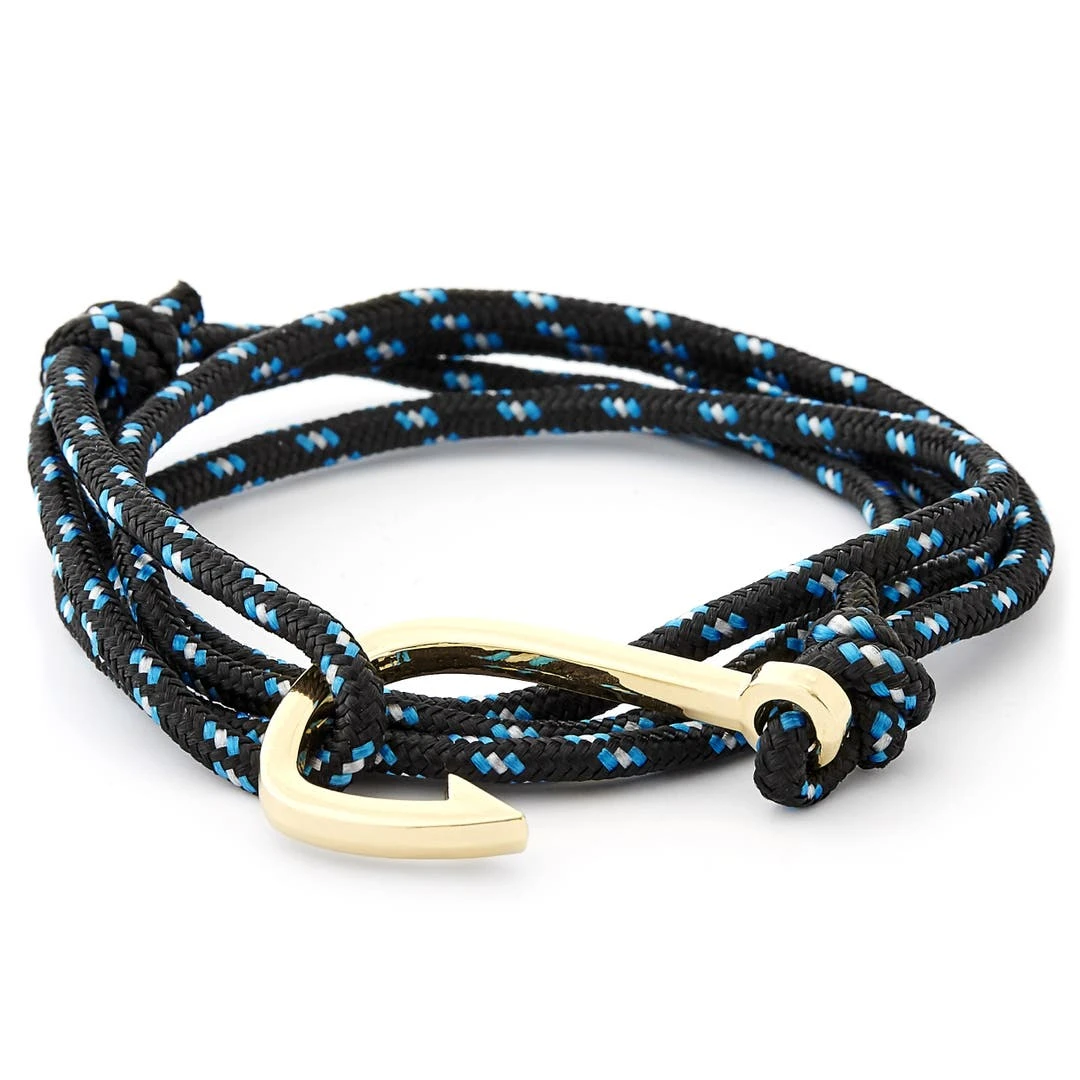 Tailor Toki Bracelet L’hamecon Doré à Cordon Noir, Blanc Et Bleu